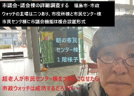 11月19日 ■12月定例議会から福島市政ウォッチしようと準備ウォッチしている。今日は朝から市民センターの全体の機能をウォッチ。4と5階が市議会機能で市民は許可を得ないと立ち入れない。3階までが市民のための会議室機能。平面図などをいただいた。他はFBに投稿。 ■左腕を上げるとわきの下が痛いので日赤に来週末で予約。乳がんか診断してもらう。単なる老化かな、油断は禁物なので早めに診察をうけたい。 ■今日のFB投稿 ●福島市政ウォッチする場所を調査する。 市民センター機能を理解するために平面図と部屋のそれぞれの大きさ、料金表を手に入れる。4人で3時間資料できる4人部屋は300円、12人部屋は700円、冷暖房費含む。安価で使い勝手よさそう。自転車置き場も3方にある、1階広場は機能がぼんやりしている。 議場と4つの委員会室は最上階の5階にある。4階は会派別の控室、事務室、議会図書館あるも小さすぎて貧弱。4,5階は許可がなければ入場できない。 ● ついでに、市民相談室、市民共創課、教育委員会、住宅政策課をまわり、調査する。いろいろ分かり、市政ウォッチ準備は整いつつある。12月定例市議会は乱会となるので見逃してはならないと思う。まだ日程も定まっていないし、市役所の方々の緊張が満ちている感じ。新市長、市議会に仲間無でスタートする大転換だから、市長と市議会が乱れないで収まるはずなし。 ● 新聞記事に俺・コメント採用されている(笑 17日7時、市長に当選した馬場さんが辻立ちするので写真を撮りに行った。その時、読売新聞の女性記者に聞かれたので応じた。コメントの一部が記事になっていた。敗者に石の礫を投げるのはみっともないし、12月定例を含め市議会と市政ウォッチするので、ボンヤリ柔らかく話した。 記事表現は記者の自由なので、聞かれる側は何でも話していい気になってはいけない。記者魂をもってどう表現するかを予測しながら、語らないと記者を逆恨みする愚を犯してしまうことになる。名前を出してもいいと伝えたが12月定例議会は乱会まちがいないので、名前は差し控えたようだ、賢い女性記者である。友達なって市議会に関して情報交換しながら市政ウォッチするのもいいかも(笑 まだ数日だけウォッチししたんだけれど、色んな人との交流は生まれてしまうもんだ。福島中央レクダンス・ロードの山崎さんに誘われて練習う風景を見せてもらった。おばさんたちが演歌に合わせて踊っている、健康にいいもんだと参加したくなった。水曜日の9時からが練習時間だという。来週の水曜日は教育委員会ウォッチなので残念ながら参加できない。 今日も市役所をウォッチしたけれど知らない課ばかりで、未知の洞窟を探検している気分です、市役所棟は真ん中が暗い、そして来客がほとんど居ない、そのせいもあり「洞窟感満載」の設計姿勢なんですね。 |