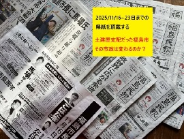 11月24日 ■午前福島市市政について調べてまとめたりする。新市長の公約もほぼ理解した。 ■花田先生のweb記事についてやりとりし、夕方修正し連絡する。 ■午後おでんの材料を買いに行き、こつこつ焚く。おでんは脂ぎらず体にもよさそうな気がする。なんたって食後の片付けが楽だから、根拠はないんだけど胃腸にも負担は軽いような気がする。 ■FB投稿 2週間、市長選と福島市議補選をウォッチした 福島市の「土建屋と地上げ屋」が市政や県政と政治家を支配していた戦後はようや終わったのだろうか? 福島市もようICTの影響(革命から30年経)を受け、選挙民の意識は変わった気がするが定かでない。脱・土建屋市政ははたして長続きするのか?一時の幻でおわるのか・・・今は誰もそのことを知らない。そこで、福島市市政をウォッチし始めた。 ●新聞もTVなどのマスメディアを見ない飯炊き爺さん、マスコミ無が日々の暮らしだ。図書館に行くのが面倒なので、福島県紙を2週間分頂戴し眺めた。(スクラップにするか4年後を目指してまま保存するか・・まだ決めてない。) 若者の市長当選は話題になった前例がある。2023年4月に起きた。灘中高〜東大、そしてハーバードで学んだ高島 崚輔・市長26才で登場。(4月23日)全国的な話題になったので周知かな。一方福島市は相も変わらず、土建屋と地上げ屋に支配され閉塞状況は続けていた。世界大恐慌から100年間沈滞続く福島市はいつになったら展望がひらかれるのか。(保存すべき優れた建築物は解体し尽した) 今、市長選挙は共産党以外の市会議員たちは全員が敗れた元市長に乗って大団結したが、33歳の若者は公共放送によってゼロ打ちの圧勝。もちろん記者クラブでぬくぬく暮らしているきしゃたちがつくる県紙面だって現市長に乗っていたのだ。かれらはどのように新市長との亀裂を補って飼い犬になっていくのだろうか、それもウォッチしたいが手が回らないね、市政だけウォッチするよ。 |