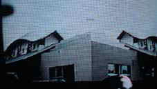 地球庵にあつたようにドームがあつて。ヌメーとしてる大門。初期、若いときの渡辺建築にはヌメーとが無いですけどね。この奥にあるピラミットの形有るじゃないですか、標準住宅というのありましたよねあの形。その奥にあるのが上部が木造の体育館なんだけど、