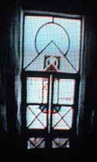 佐藤:こういうの地球庵にも有ったでしょう。ステンドグラス。気が付いてたと思うけど。こんなこと普通やるかね。手で書いても。ガラスはまってる。