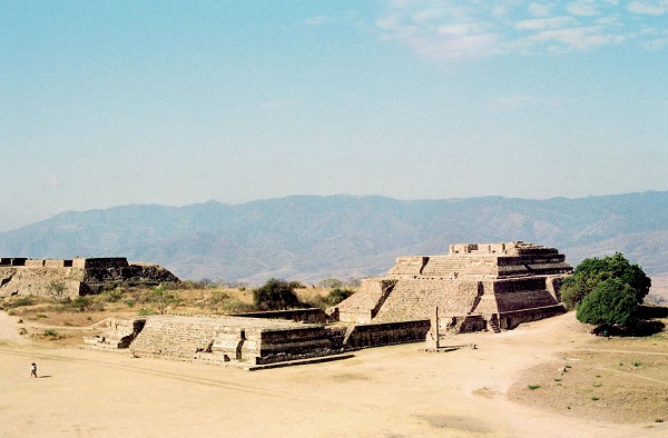 テオティワカンはAD450年ごろ、突然見捨てられ、アステカ族がメキシコシティ近傍に姿を表したときにはすでに廃墟となって久しく、この壮大な遺跡を見たアステカ族は「神々の座」を意味するテオティワカンと名づけたが、モンテ・アルバンとは「白い山」の意味であるという。白い山とわざわざいわれるように、この山は緑が少なく、麓のオアハカの緑濃い風景からすれば不毛の地といった印象を受ける。