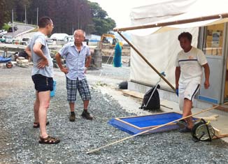 8月02日 昨日今日福島から鮪立 9時から、地田浜別家の浩平さんの家にいき 鮪立湾の運営委員の浩平さんを取材をする 子どもの頃から 辛いことも含おおかたを聞き取る。味わいふかい内容の記事に仕上げたい。昼飯もごちそうになる。地域紙「宿藤鮪報・おらほうに」の2号目の主なる記事にする予定。 行政の窓口であり地域の人々と港を親しむために作った組織、鮪立親港会の会長さんでもある浩平さんは漁協の問題も地域の問題も知る 要の人である。人生の苦労話も少しおりまぜながら 聞く。家族の方々は漁業をついでいない。漁業の盛衰を生きている人生だ。 ![]() 今日午後の鮪立活動 午前に引き続きmy新聞「宿藤鮪報・おらほう」の鮪立地区では基礎の解体がはじまった。午後は記事集めをした 。ブランケット版4頁オールカラーを埋め尽くす記事は既にあるのだが 時間のある限り歩く。厚みのある、長い時間を生き抜く 311以降の問題を被災地以外の人々も被災時の知恵として共有することが記録に似た記事内容にしようと 鮪立地区を南から北まで行き来する。セシウムがある盆地福島市の気候より海風山風が吹き活動しやすい。