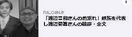 9月3日 午前中強い雨、午後 ■1日中、お別れ会体験記をしあげていた。 ■FB投稿 渡辺豊和さんのお別れ会体験記 読み直しすすむ 23日以降渡辺豊和さん三昧のていだ。なぜたか分からないが日本の敗戦期を通過した渡辺豊和さんと寺山修司さんの著書は感じ入り共感する点が多いのだ。 原因は解明できていない。強いていえば抑圧された者の文学・言葉のような気がする。渡辺さんは母親から愛され、寺山修司は母に捨てられても愛憎は互いに共有し合っていた。 お互い体制への、衆生への「反抗魂」は貫かれている、この点が共通する気がする。北東北三県こそ東北魂の故郷だ。現在はあの魂があるのか、ないのか知らない。 |
