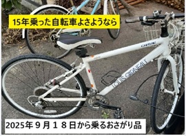 9月17日 ■ my長女のおさがり自転車をひっぱりだして、近所の自転車屋に転がしていく。前後のタイヤとチューブを交換してもらった。16000円超え。2000円で機械油も買う。鍵は古いのが使える。夜のライトはついているのだが、代用品を付けるよてい。 ■午後、近所の胃腸科に行き、市民検査の結果などを聞く、問題ないとのこと、今後は年一回の市民検査を受けよう。大腸内視鏡検査は3年後でいいのではないかな・・頻繁に肛門に突っ込み検査すると締まりが悪くなる。肛門筋の鍛え方を勉強しよう。動画が落ちているかもしれないな・・・。年はとりたくないけど仕方ない。 ■FB投稿 朝立ち爺さん復活(笑 前立腺癌になっても朝立ち来るよ 「10年間は生きられるでしょう。」と担当の医師の宣告から2年が経った。残り8年は生きられるみたい、ピンピン朝立ちも戻り元気になった。無料の市民検査をあれこれ受けて結果を今日、聞いたら、コレステロールなどすべて正常値内だった、血液もピンピン回復・・粗食つづけて4ヶ月だったか1年だったか忘れてしまった・・血液ピンピンでよろしいのだ。 ●それならと・・・今日、娘のおさがり自転車を引っ張りだし、タイヤとチューブを新調。8年間はこれ一台で持つだろう。これが人生最後の自転車となる予定なので、時々掃除したり油をさしたりし手入れし、快適な自転車ライフを楽しむよ。飯炊き爺さんから解放されてないので、秋の風景をめでる、遠出サイクリングできないので残念。 ●運転免許は先月失効させたばかりだ。公共交通と自転車と徒歩の暮らしに移行した。老人ドライバーに曳き殺されないように対向車など紅葉マークを見過ごさないようにしよう。紅葉が来たら道路わきに退避がいいかもだ。明日から乗るので、自分でお祓いしよう。う。 ●古い自転車は15年乗ったので粗大ごみに出そう。ありがとう自転車! |