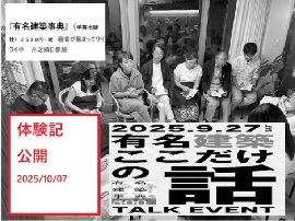10月30日 ■午前中タントさんの3時間目の記録に画像などを付けwebアップした。 ■午後、昨日の会議の記録作りの下準備をする。 ■FB投稿 タントさんに聞く 全3時間web頁の公開完 http://fullchin.jp/etu25/20251007ta/01-20251007/01.html 最後の一時間ほどは「さっさと博士論文書け!」という記録になっています。博論書けずに苦労している方々、才能の無い方々、昔そうだった方々など興味が湧く、あるいは辛くって読み進められない内容かもしれません。タントさんの肉声は一つの現在の建築・アカデミズムの何かを表している、彼はそれを体現し続け悶絶している、ところから語ることで脱出していると思いながらお聞きしておりました。web頁読むひまがあったら論文書きなさい!ということですが・・皆さんは、タントさんのように無益とも思える自分の路をコツコツ日々耕しているでしょうか? |