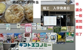 3月16日 午前9時過ぎ家をでて市議会へ。10時から一般質問を傍聴する14時すぎ終了。 ■FB投稿 福島市議会一般質問最終日 10時から午後2時まで3人の質疑を3時間傍聴する。 市内に暮らすため有効な知識と情報のありかを知るには傍聴がよい。時間はかかるんたけどマスコミの価値より遥かに高いな・・・と飯炊き爺さんは思う。 勉強している市議と座っているだけの市議の違いの質問の質の差も明確に分かる。昨年12月以前は福島市議を誰も知らなかった。傍聴していた知らない市民、そして予想外の人々と交流対話する機会をえることになっている。 最終日、最初に登壇した市議はゴミに関する多様な内容を1時間質疑。ゴミはだれの生活にでも直結している。正しく詳細にゴミ問題の現在を知るには傍聴は有効である。(不用品を持ち寄って無料で譲「ギフトエコノミー」が3月28日市民センターで10時から開催されるので見学してみよう。) 傍聴で知った資料が欲しくなったので、環境保全課により詳細資料を頂戴する。作成費用は100円かかるそうだが無償でいただける。 2人目は飯炊き爺さんとご縁のある元プロ投手登壇。スポーツと教育効果、健康づくりなど多岐にわたり1時間。初登壇なので初々しいし突っ込みは甘いのだが、今後の研鑽に期待しよう。3人目は最も得票数が多い市議登壇。うるさ型の爺さん支援者が30人ほど傍聴していた。内容は災害時の情報発信ツールなどに関すること多数。(既に市では対応済の事が多いように思った) 帰宅途中にある福島県立工業高校の合格発表を見学。「ある科は募集定員の半分しか受験者ない・・・」と、県高卒業生だという先生はぼやき気味。 |