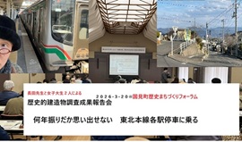 3月20日 ■午前買い出しをし、午後、国見町の報告会へ。途中退席し夕飯をつくる。おもったより忙しい日だった。 ■FB投稿 長田城治先生と郡山女子大生2人による報告会に参加 @国見町歴史まちづくりフォーラム。福大で日本史歴史を学び、国見町の歴史まちづくりを起動させている企画調整課地域振興課の担当者の方は、飯炊き爺さんと同期のヘリテージマネージャーでもある。だから町の歴史的建築と歴史そのものに情熱+らぶちゅーうにゅうし続けている。県北でも希なお役人さんだ。長田先生は山形の芸工大時代から国見町の委託で歴史的建造物の研究を着実に続けていて、後藤治先生の前座だったと思うんだけどその時の報告も拝聴していた。 案内があったわけではないが、長田先生の指導成果である学生さんの報告を聞きに出かけた。 ●国見町は破砕帯を内包している町でもある。311時に大きな被害を受けてしまい町役場も立て直さざるをえなくなりそのご木質化建築を建てた。(現地自主調査した・・不法侵入だったかもな)311直後、飯炊き爺さんは国見町の破砕帯ををなぞるように被災調査してた。これが破砕帯なの地震後の様か!と驚いた。新幹線線路も大きな被害をうけていたし、下水道は液状化でマンホールがそこかしこで飛び出していた。今日のテーマであった奥山家も大変な被害を受けてしまっていた。破砕帯おそるべしと思った。 ●長田先生の教育は好感が持てる。2人の女子大生の個性を存分に引き出し、彼女たちの個性に合わせるような歴的まつちづくりの研究成果を手に入れていた。おめでとうございます、国見町と長田先生と生徒さん2人、地球を半周する距離いききしたそうで、それも、ご苦労様でした。縮退社会にある私物でもあり歴史的建造物の保存活用は、あるいは調査は困難な問題だらけだと推測して間違いない(金融業を営んでいたならさらにむずかしい)。若い方々に「今後も活躍してください!」と伝えずに途中で飯炊きに戻った。伝えずとも活躍することだろうからだ。 ●気合と愛が満載!資料内の年表を手に取り開いて・・・感動した!素晴らしい。 ●読みたい本刊行された。 (東北では角館木匠塾がひらかれていた。) 開催されていたのは角館町。町から経済と宿泊所(体育館)の支援を得て、2000年前後に活動していた。ひろーい東北地方の多様な大学の教員と学生さんとの交流する機会を得たし、大曲の花火大会に皆で出かけたりし角館の地を満喫した。 福島県内からは郡山日大建築系の学生が参加していた。飯炊き爺さんは渡辺豊和さんから無茶ぶり、福島から遠い遠いのに・・電話がかかって来て、4年ぐらい審査員や学生の世話を支援させられた。秋田の小京都と称される角館町を何度も丹念に体験することにもなった。福島にもどり日大の学生とも我が家などで建築的な交流もした、いまでもFBで交流している学生さんもいる。木匠塾懐かしい響きであるよ。 |