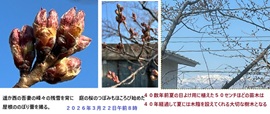 3月22日 ■ FB投稿 45才ほどかな・・庭の桜のつぼみ膨らみはじめる。 「桜の開花はまだか?」と屋根にのぼって蕾を撮る。新型コロナが猛威を振るいはじめた2020年の春、この日はすでに開花していた。桜は正直なので今年は平年より寒く春が足踏みしているようだ。今日は気温マイナスになり霜がおりたようだ。数日晴れているが寒い朝晩がつづいている。福島の果樹、桃やリンゴ、梨は桜が散ってからの開花なので霜に遭わずにすむだろうか。 居間から桜を見ながら「花見で一杯」宴を開いていたのだが、40数年後の現在は成長しすぎて寝ながら見上げるほどの幹になってしまった。猛暑が続いている初夏から夏には日除けとして大いに役立つように枝葉を広げている。 (床下に根をはっているようで床暖された根をもつ桜は例年周りの桜にくらべて1週間ほど早咲きだ) ● 長崎市周辺にお住いのかた、うらやましいです! お二人(清水+岡田 両先生)による講義など・・何年ぶりでしょうか? (2010年2月6日以来なのでは http://fullchin.jp/00big/2010/1026okasimi/01/okasimi01.htm ) |