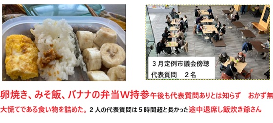 3月12日 一日市議会ウォッチす。 すこし寝坊したが、手作り弁当を持参し市議会ウオッチする。今日は4名の市議による一般質問4時間傍聴。10時前席の前の女性に聞いたこと。彼女は「古い議場でも傍聴していて、傍聴席に机があったのよ、前の傍聴席の方が使いやすかった。」と悔しそうなのでさらに聞くと、「傍聴席に机を設けるように陳情したけど叶わなかった!市民の税金で成り立っている市議会なのに・・・。」と議場を睨んでいた。「聞こえても構わない」とも言っていた。 イランと米国の戦争にも使われているAIを市政運営にも活用せよの大合唱も面白いのだが、飯炊き爺さんが今日の議場内でもっとも面白かったのは女性・愛煙家市議が「卒煙支援ベースを議会棟に設けよ、」と要望し議場の笑いを誘っていた。当然のことだが否定された。タバコをやめられない女子も多いようだ。続いて議論内容を雑にメモしておこう。 1番目に登壇した市議は吾妻山裾にある先達山のメガソーラーが放つ光害の詳細と市は予想図(企画説明書)のような緑化状態にならなければ完成届けを受理しないと繰り返していた。再エネ公害とでも言えばいいんだろうけど、再エネ賦課金を電力会社から強制自動的に取られてしまっているが、賦課金は支払いたくないと思う。けれど、市議はそこまでは突っ込まないのだ。 重要文化財の広瀬座(古建築)の活用については「全国芝居小屋会議に参加するなどして連携したらどうだ。」と要望していたが、古典芸能誘致はしないようだ。演劇活動をしている人は見当たらないので演劇や歌舞伎の活用はむずいだろう。広瀬座が作られた時代とはメディアの多様性と特に動画の普及状況は違い過ぎるので安易に実行できないだろう。古建築を活用し採算に合うか、重文そのものが壊されないか・・・などもあり、重文の保存・活用はまだ課題が多いだろう。 2番目は、困難な問題を抱える女性支援に関する法律に関しての質問。DVなどで避難する必要な女性の保護などについてだった。話を聞いていて、市内で著名政治家の方々が運営していた母子が暮らす建築を40年前に設計を担当した、「母子寮」を思い出した。最後はシルバーパスポートの昨年の使用現況も分かり易かった。(使いにくいとは俺も思うのだが、さほど使われていない)。 3番目東口再開発の工事遅延や、床面積10%で、何をどこを削るのかなどの深堀質疑は興味深かった。新たな戦争も始まってしまい、設計変更すれど・・・更に工事費高騰に遭うだろう。踏んだり蹴ったりはまだ続く東口再開発建設工事。市議たちもげんなりしていること、だろう。誰も解決の糸口をつかめなくなりそうだ。 4番目は河川や水の恋人は森林というような質疑で、冒頭はスピリチュアルな物言いだったが、聞いていると森林の樹木、森にすむ生物たち、細菌 などにも生命権を認める、人間社会、福島市を目指そうという問題提起だったら、世界最前線に立てると思ってきいていた。だがそこまでは至らず。今後の勉強に期待したい。 市議会終了後のこと。傍聴に来ていた人々と雑談した。子供食堂を営んでいる方の語りはよかった。「おにぎりを4個ぺろりと食べ、あと二つ頂戴と持ち帰る子供もいる」とわらっていた。彼女の活動に拍手を送った。 市議会を傍聴しに来ている方々もも男女かまわず声をかけて、興味が向いたら聞いている。そこで、色々な福島市内の情報を教えてもらう、それも楽しみの一つ。女性の方が気さくに語るとも分かった。女性たちが男性より平均的に長生きするのも、うなづける。 |
