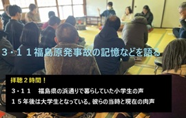 3月7日 ■午前、市議会ウオッチ資料を整理する。スーパーに買い出しへ。 ■午後、若い人たちの311被災についての話を聞く。 ■FB投稿 子供たちの311(原発事故)の記憶などを拝聴2時間 15年経ち彼らは大学生となって原発事故などで被災した当時をどう語るのだろうか・・浜通りの人とはほとんど交流し対話も叶わない日々の俺だ。福島県中通りで被災した俺にも稀な機会なので出かけて拝聴。(家族同士でも先生─県教育委員会の職員─と生徒でも語ることがなかったんだ、と知る) 感想は、あの時も現在の福島県内の大人たちも子供たちも当時を語らない、語れないのか、語ってはいけないのか・・理由は分からない。語る人は概ね役所サイドでへらへら復興情報拡散活動を担って思いあがっている方(約80%)だろう。歴史を自分のものにしようと、足下を見つめ自分の言葉で語りだす人(20%)に出会う機会はほぼない。マスコミサイドの人に載せられて語る人も多いが、その彼らは既に消費されて御用済みとなっている。加えて復興は進んでいるのだの大合唱のなかで自分の言葉で語れる能力を持つ人は少ない。 今日登壇した彼らは、気の毒なことだが語る言葉を身に付けざるを得なかった。311から今も毎日悩んで大人になっても考え続けている。その言葉は重い荷物を背負い生きている哲学者たちからしか生まれない。哲学者は偏るものであり、311に遭っても楽しく生きてなにが悪い!と語る若者も参加しているなら、311語りに厚みが増しただろう・・と。聞き手の我がままでもあるけれど、推しが一面的でもあり、気になった。 ●市議会ウオッチもしているけれど、行政マン+市議たちも自分の営む家族間で、生きた人間の対話を成り立たせているのだろうか?と考えてしまう機会が多い、演じてないか?。FB仲間にも、まずは家族間で生きた対話のある、時には討論、時には悩み、重い内容も語り合う、そんな暮らしを務め継続してほしい。人生のなかでいつか襲うだろう災害に遭っても、熱い厚い家族観を基盤にしないと対話や言葉は生まれない。まずは身近な人とどれだけ言葉数多く話題広くワイワイすることなんだろう、どの集団にあっても。 |