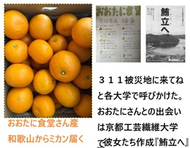 3月14日 資料などを整理する日。 ■FB投稿 歌山から春のみかん届いた。 生産したのは「おおたに食堂さん」。送り主の彼女と知り合ったのは2011年「3・11被災地報告」を京都工繊大で出会った。ほかにも大阪、京都、東京圏内では芸大・東大などからも声がかかり被災地から現況を報告など実施した。同時に「大災害の被災地に来て見て体験して・・・」誘っていた。(フクシマに来てと誘っても、親からクレームが出るなどと断られた。誰も来なかったがついに、8年後に京大の柳沢究先生と学生さんたちによって福島県庁とフクシマ各地を取材していただいた─記録あり) 岡田研のおおたにさんと仲間たちは現地に来てフリーペーパー『鮪立へ』を刊行した(凄いことだ)和歌山の漁民が鰹を追って宮城県唐桑半島にたどり着き、東北での鰹の一本釣り発祥に地になっている鮪立(しびだち)。 工繊大岡田研作成のフリーペーパーは唐桑半島の港町の鮪立で大好評となり増刷もした。(現在もPDFで公開している http://fullchin.jp/k/002sibi/01sibi/okada.pdf 開いてみてください ませ ) みかんとの縁は岡田研でおおたにさんからみかんを頂いて以来だ。毎年、春になると注文して送っていただいている。(おおたにさんは地元に帰っているようだ) 311被災地報告会でも多くの優しい人々に知り合い現在も交流している人達は多い。あれから15年もの長きにわたりお付き合いいただきまして、改めて感謝!申し上げます。お元気でしょうか。 |